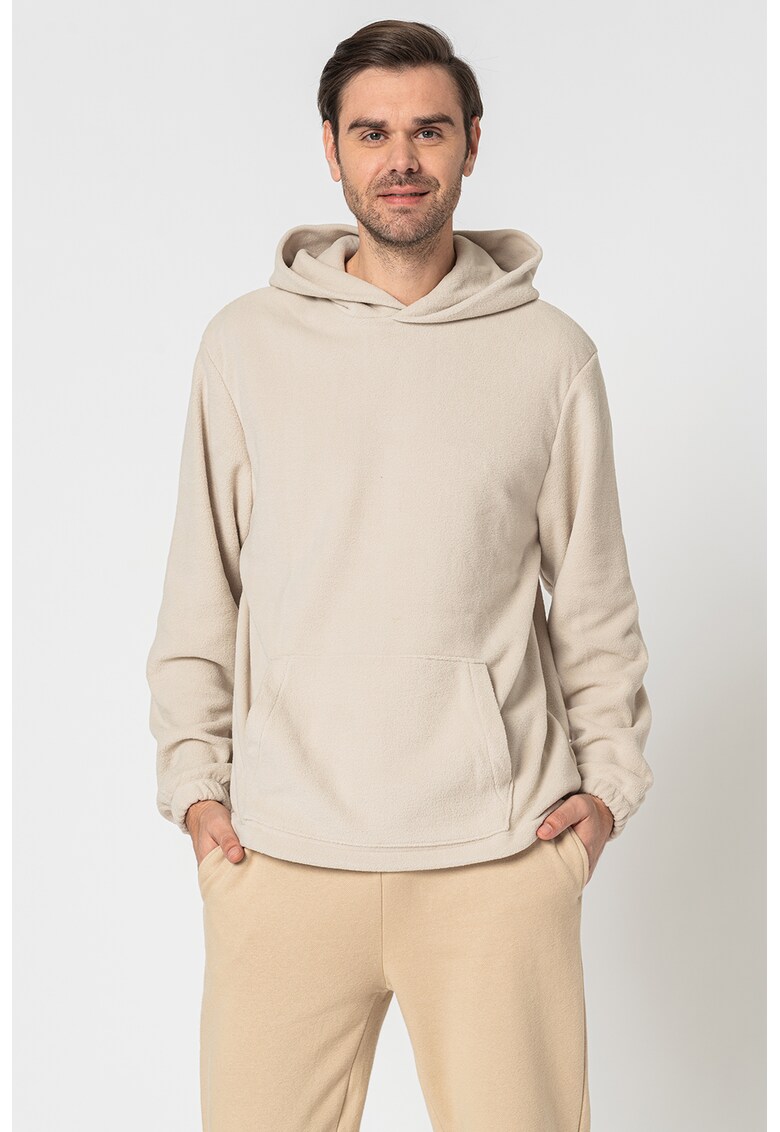 Hanorac relaxed fit din microfleece cu buzunar kangaroo